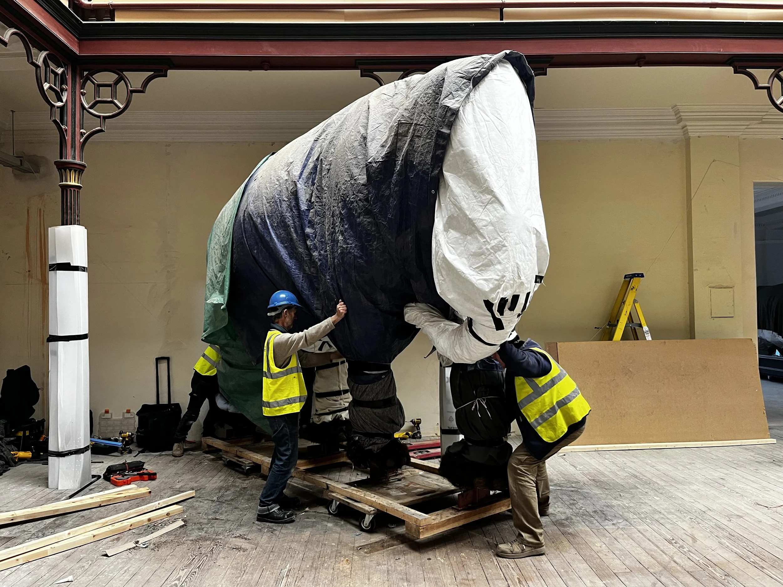 Wool-I-Am is now safely wrapped up out of the construction teams way, ready to be rehoused in the new Gallery.