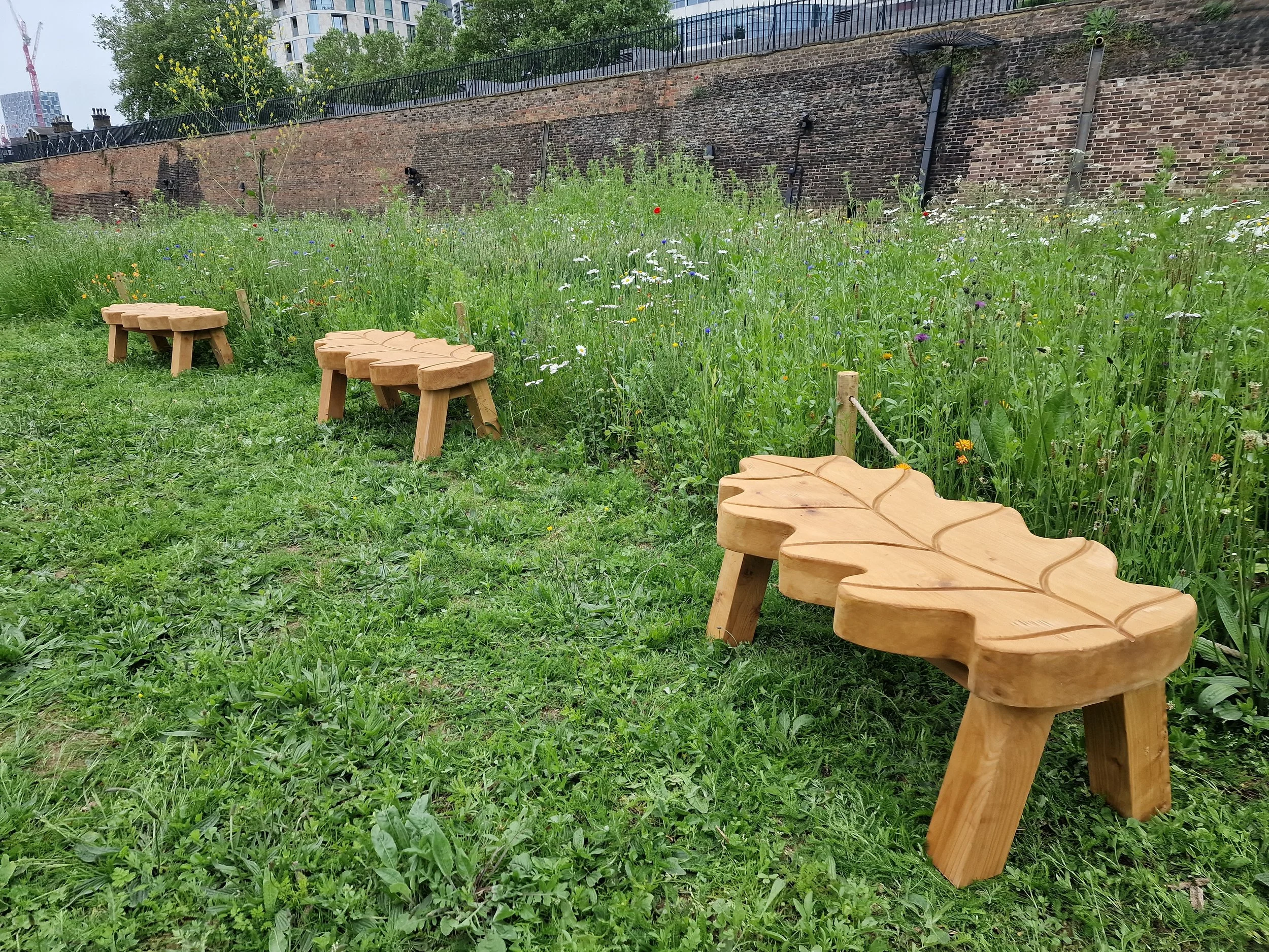 Recently, we were commissioned to design and build 9 hand-carved oak leaf benches. These beautiful benches were crafted from Red Cedar and shaped into bespoke oak leaf designs by one of our talented local artisans. Each bench has a slightly different feel, perfectly complementing the historical environment.